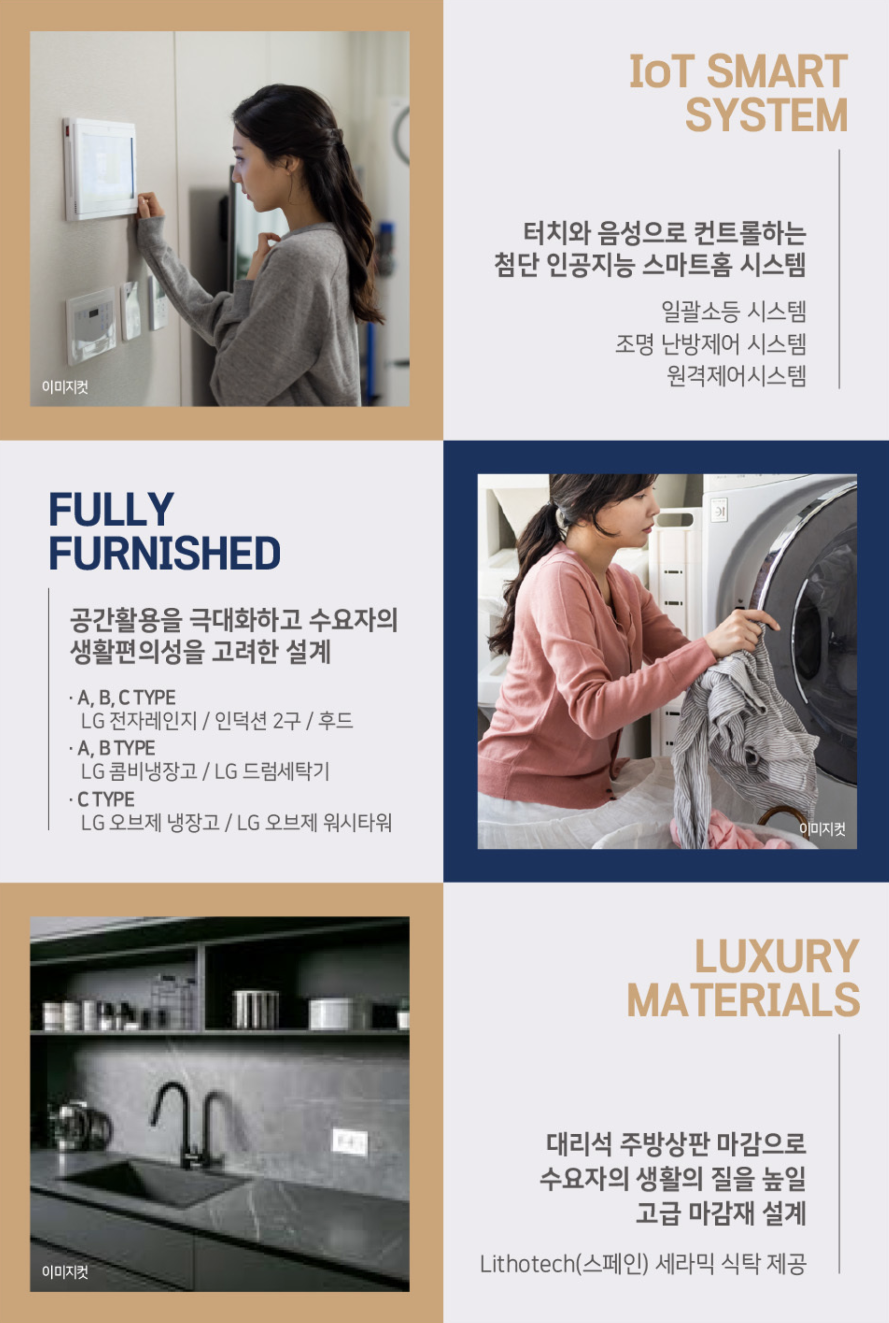 모든 세대에 시스템 에어컨과 고급 마감재가 적용되었으며,