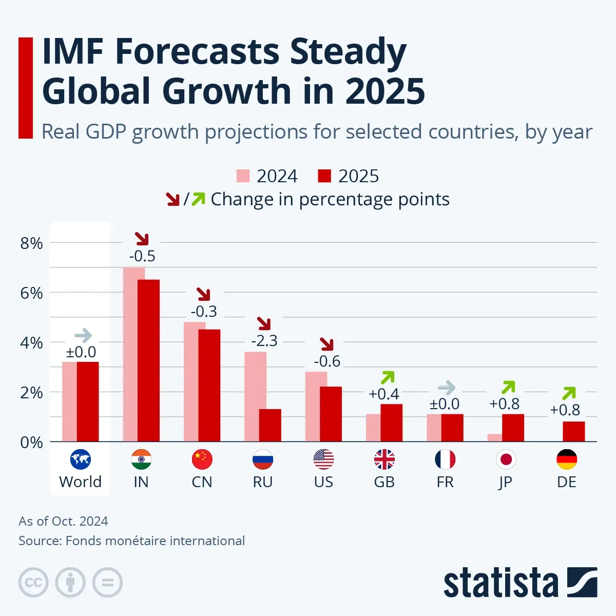 - IMF는 선진국의 성장률이 2025년에 약 1.5 % 수준으로 나타날 것이라며 성장 둔화 리스크를 경고했습니다.