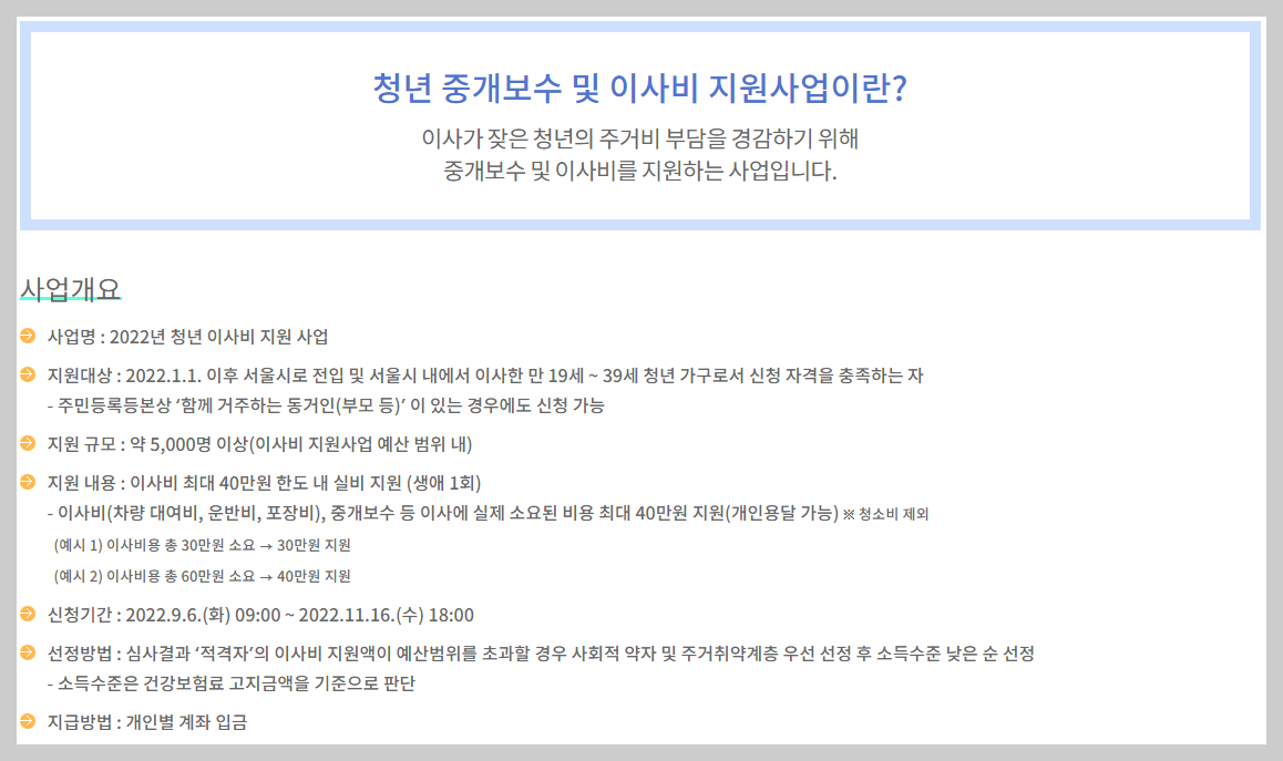 서울 청년 이사비 지원