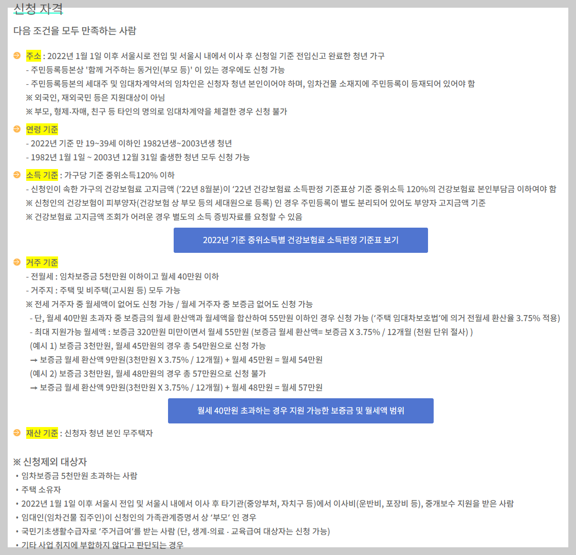 서울청년 이사비 지원사업 신청하기(자가체크)