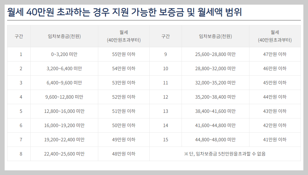 임차보증금 5천만원 이하, 월세 40만원 이하