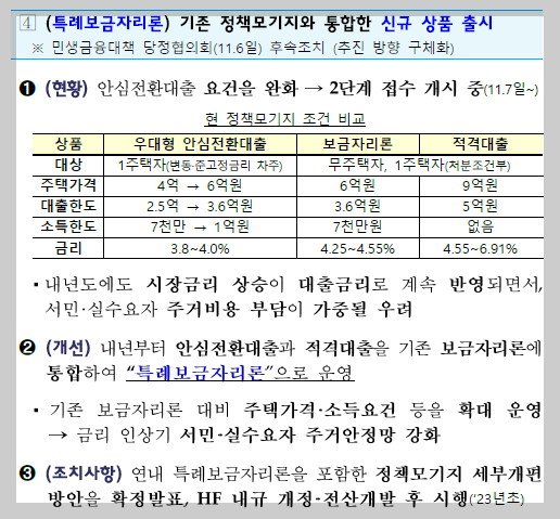 특례보금자리론: 기존 운용되고 있던 정책모기지와 통합한 신규 상품을 출시하였다.